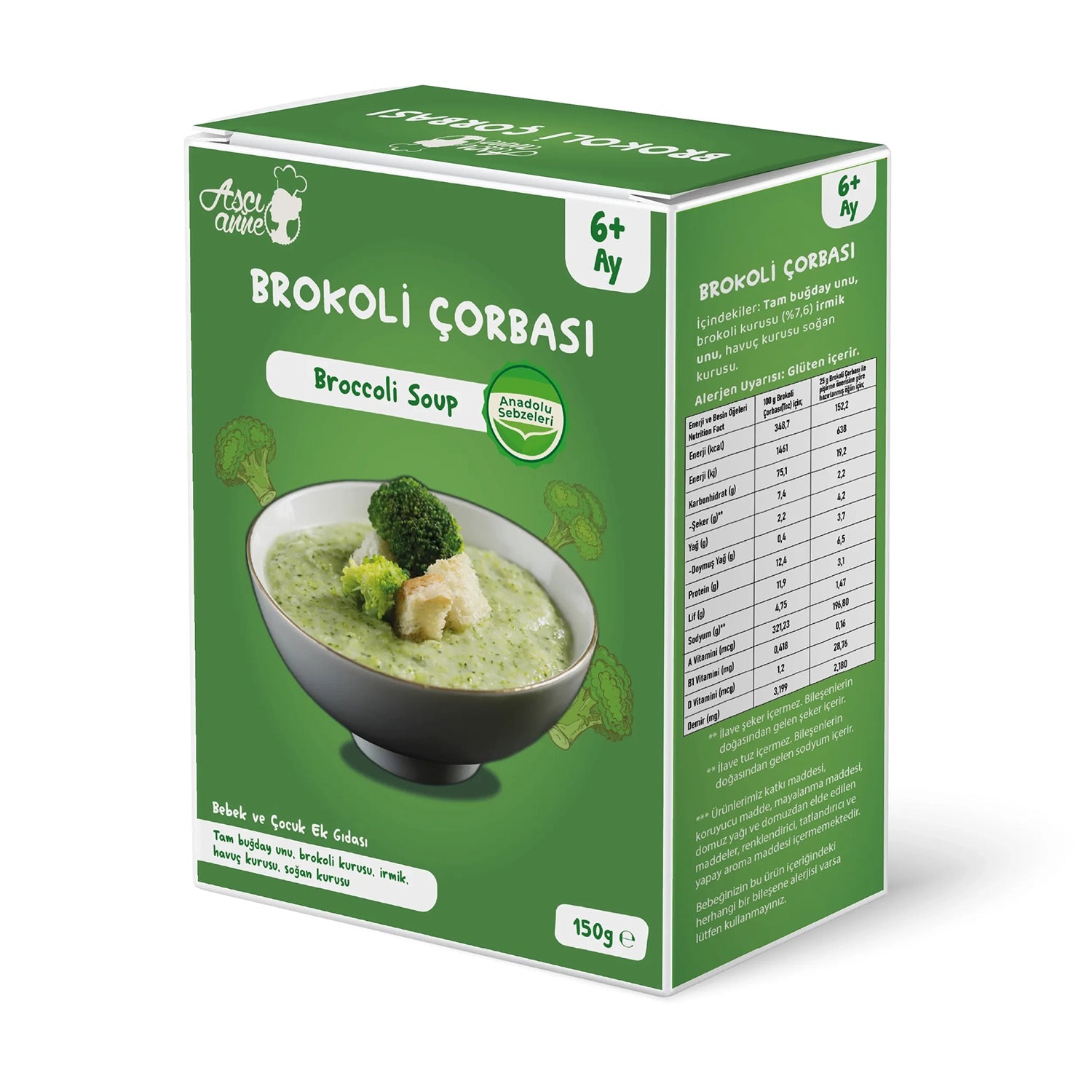 1 yemek kaşığı çorba karışımını minik bir tencereye alınız. Üzerine 1 su bardağı içme suyunu (istediğiniz kıvama göre su miktarını azaltıp arttırabilirsiniz) ilave edip karıştırarak orta ateşte pişirmeye başlayınız. Pişmeye yakın 1 tatlı kaşığı tereyağı veya zeytinyağı ilave ederek bir iki dakika daha karıştırarak pişiriniz. Dilerseniz 1 çay kaşığı Aşçı Anne Tuzsuz Kapya Biberi Salçası ve su yerine Aşçı Anne Dana veya Kuzu İlikli Kemik Suyu da koyarak pişirebilirsiniz.