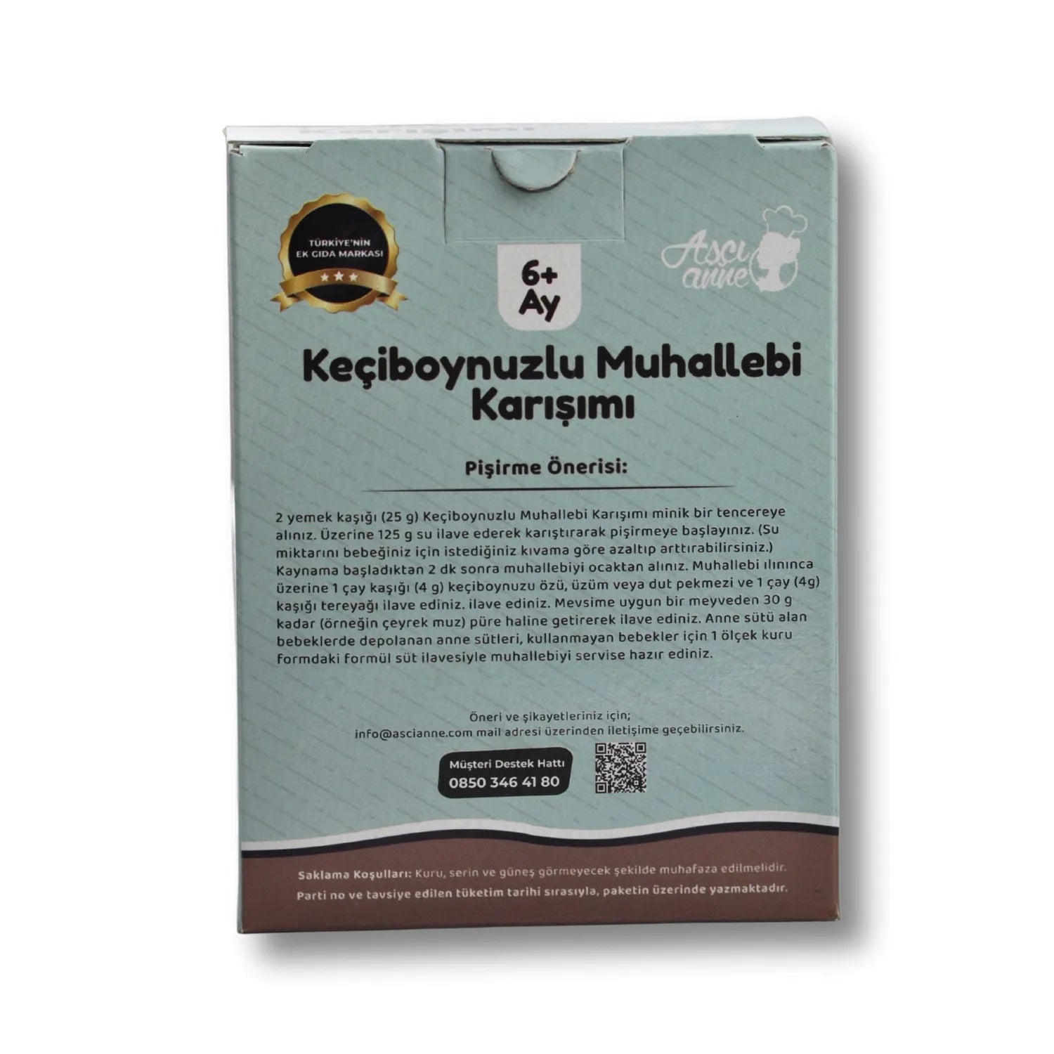 1,5 yemek kaşığı muhallebi karışımına 1 su bardağı su ilave ederek kısık ateşte karıştırarak pişiriniz. Kaynama başladıktan 2 dk sonra ocaktan alınız. Muhallebi ılınınca üzerine 1 çay kaşığı keçiboynuzu özü veya pekmez ilave ediniz. Arzuya göre tarçın, meyve püresi, parçacıkları veya taze sıkılmış meyve suyu, anne sütü (bebeğiniz tüketiyorsa) 1 ölçek kuru formda formül mama, yoğurt gibi ilavelerle muhallebiyi zenginleştirebilirsiniz.