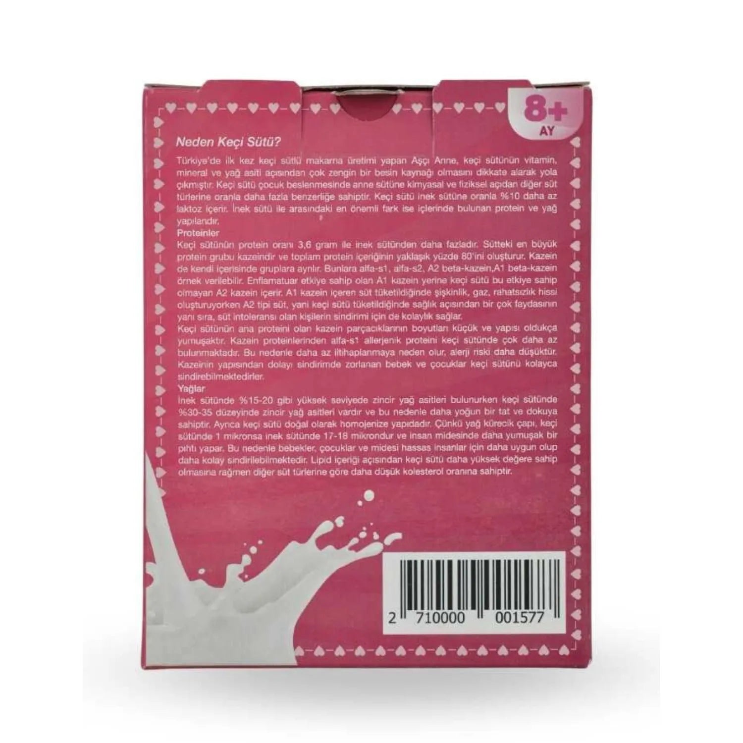 Durum buğdayı irmiği, keçi sütü (%12,8), pancar suyu (%12) , (%100 pancardan üretilmiştir).